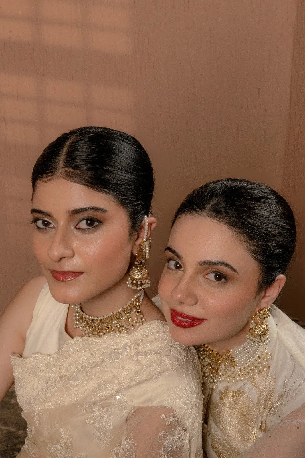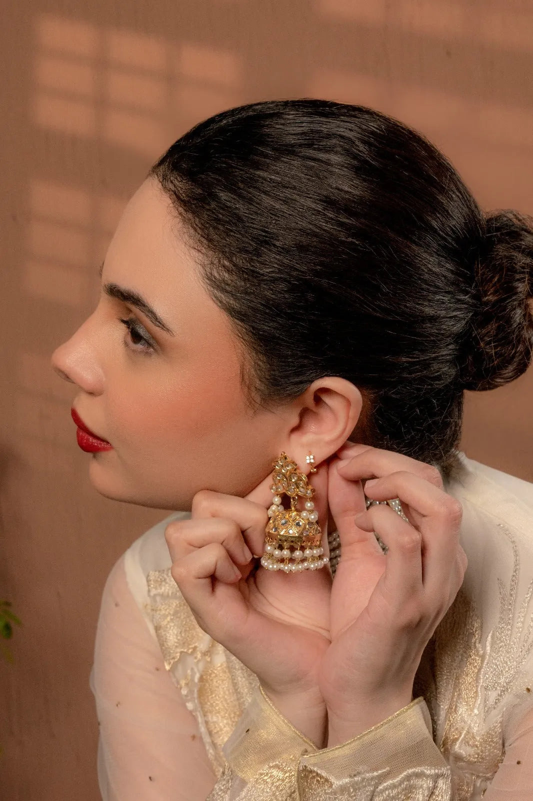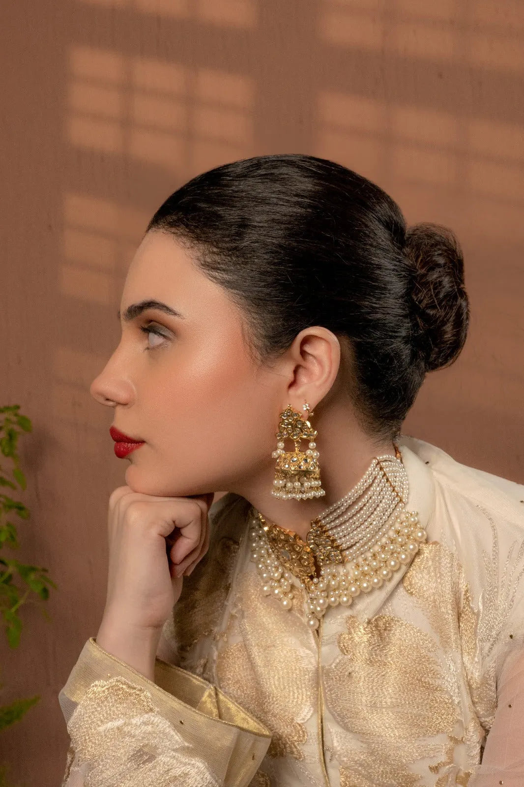 kundun gold plated choker set with jumka earrings. high quality synthic pearls. manufacturd in Pakistan
