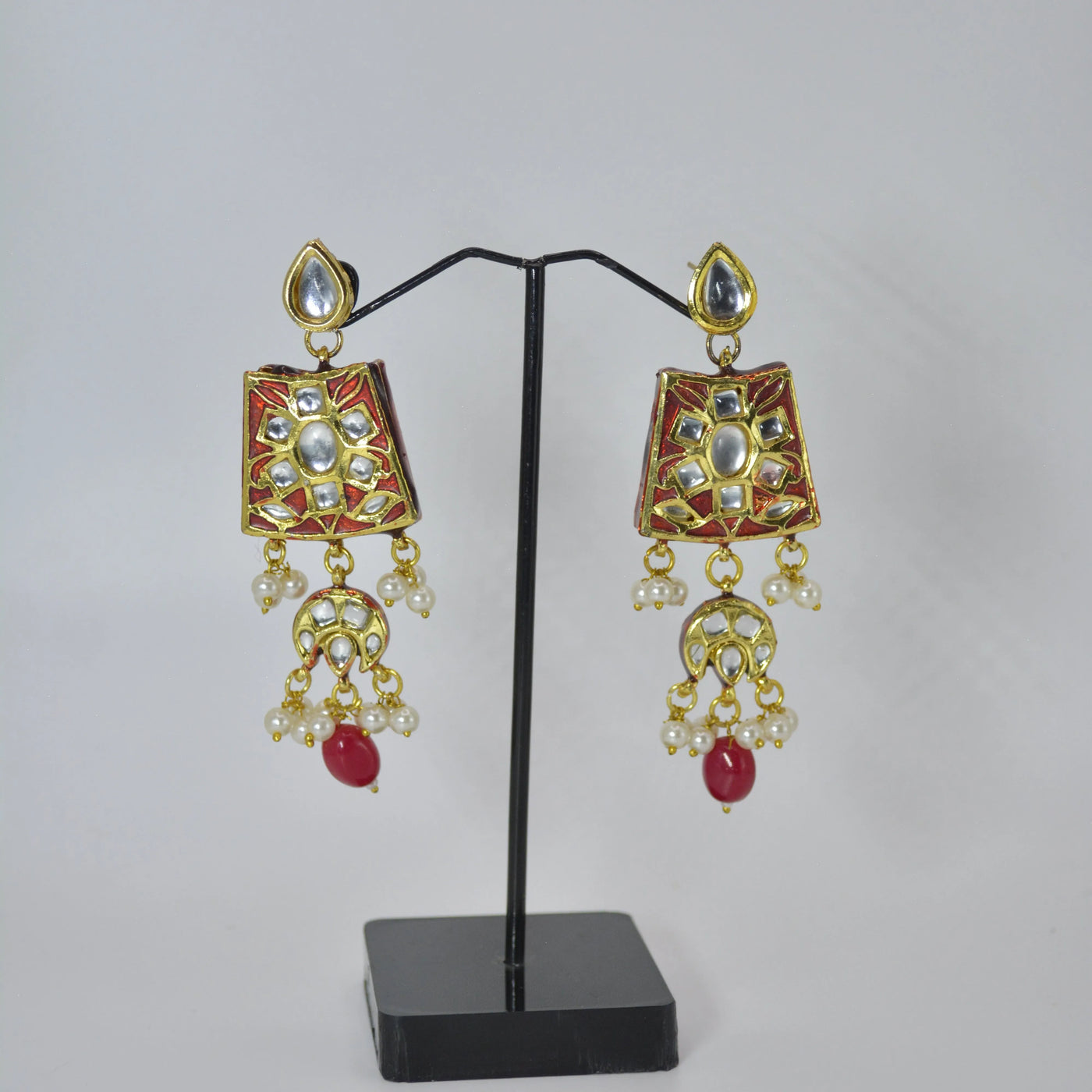 Material Used: Gold-plated, White stones, Red enamel, White pearls, Red beads